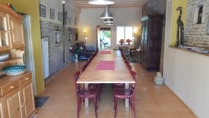 De Grange, de oude stal van Les Hiboux, hebben we verbouwd tot een Salle à Mange.
